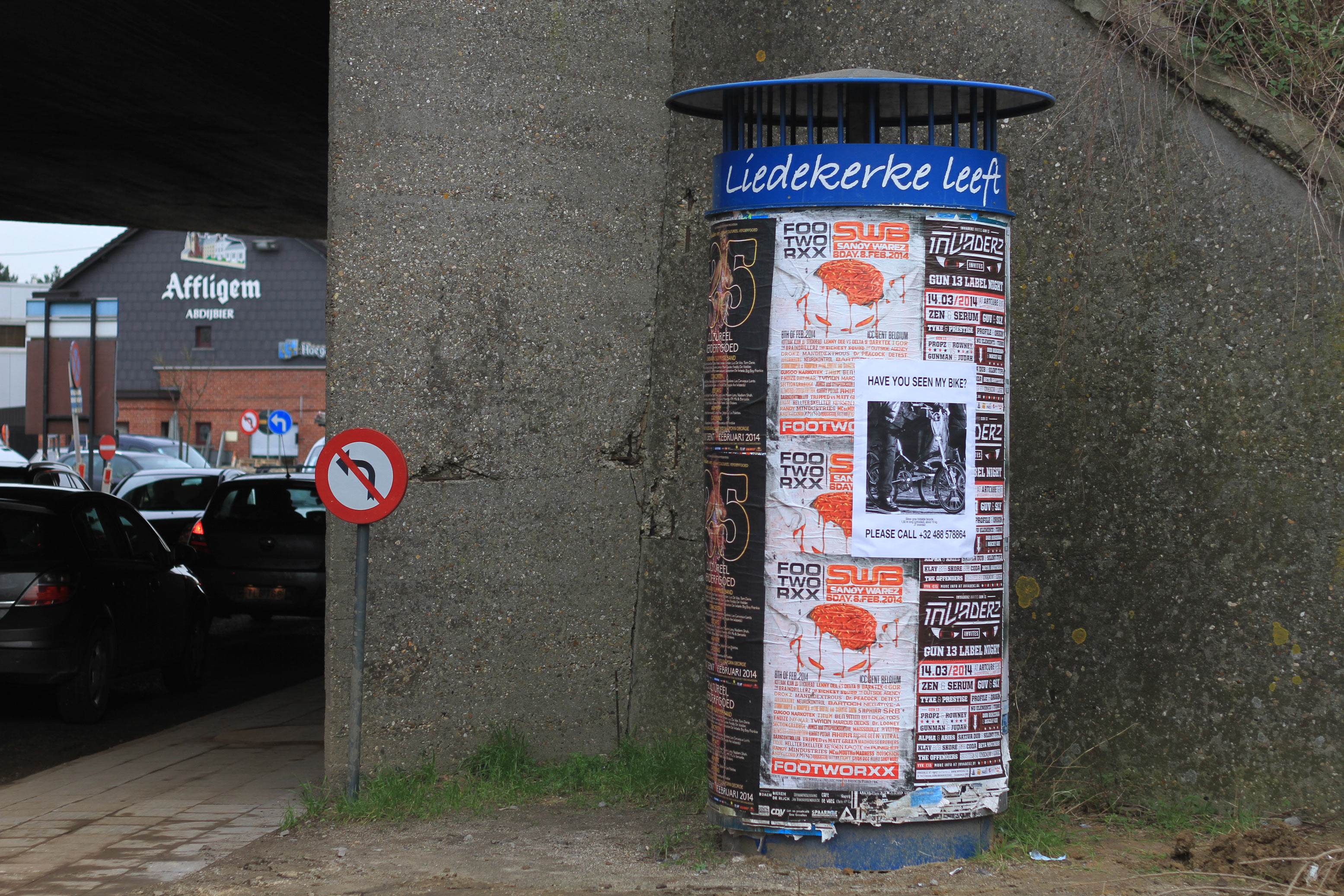 My bike was stolen in Brussels. Rather than resigning myself to its loss, I set about trying to secure its return. I went on to produce an edition of silkscreen prints that were fly-posted in different cities. The sale of an additional edition of 10 prints will provide for the purchase of a replacement bicycle.